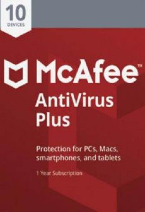 McAfee Antivirus Plus 10-Devices / 1-Year | Save On It Details. McAfee Antivirus Plus 10-Devices-Unlimited / 1-Year is an incredible antivirus solution for your PCs, Macs, and other devices. With millions of loyal users worldwide, it has become acknowledged for top-quality protection against a wide variety of threats that present danger to your devices on a daily basis.