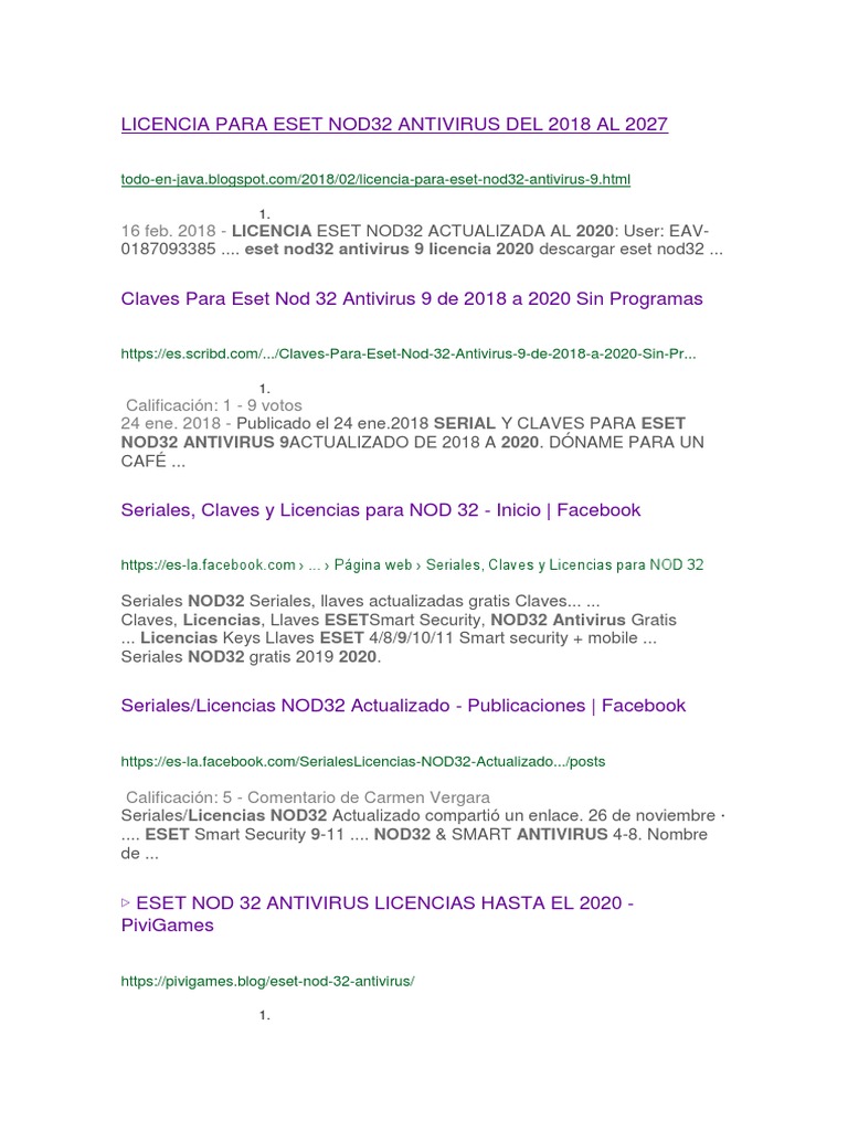 Licencias ESET NOD32 incluye versión 11, 12 ,13 para ... - Facebook Antivirus NOD32 Licencia, Serial y llaves 2021 Keys - Todas Las Versiones · November 3, 2020 at 1:12 PM · Facebook for Android ·. Licencias ESET NOD32 ...