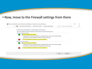 Norton Firewall Issues - Clean my PC Launch the Norton application on your computer. · Click Settings Firewall. · Navigate to the General Settings tab and click the slider to toggle it on. · If this ...